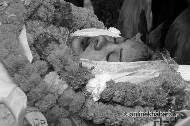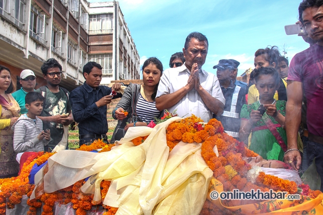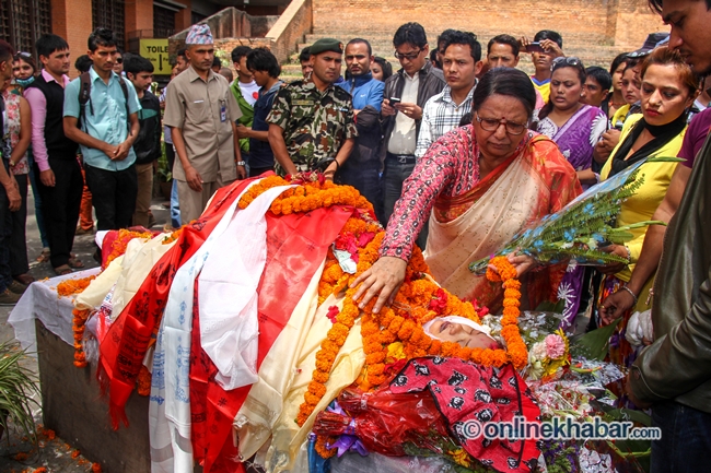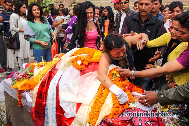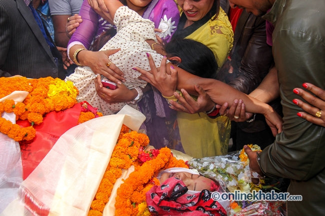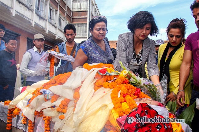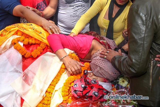 १७ चैत, काठमाडौं । सवारी दुर्घटनामा परी ज्यान गुमाएकी लोक तथा दोहोरी गायिका मञ्जु महतको सोमबार अन्त्यष्टि गरिएको छ । उनको पशुपति आर्यघाटमा अन्तिम संस्कार गरिएको हो ।