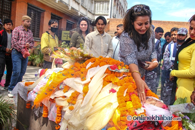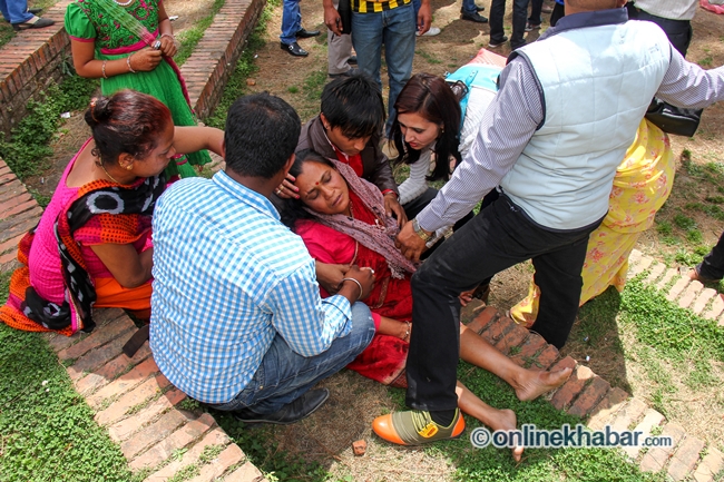 श्रद्धान्जली दिन प्रज्ञा भवन पुगेका महतकी बहिनी भावविहृवल अस्वथामा । दुर्घटना उनी पनि घाइते भएकी थिइन् ।