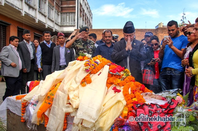 यसअघि उनको पार्थिव शरीरलाई अन्तिम श्रद्धान्जलीका लागि प्रज्ञा प्रतिष्ठान कमलादीमा राखिएको थियो । महतप्रति श्रद्धान्जली दिन सभामुख सुवास नेम्वाङ, उर्जामन्त्री राधा ज्ञवाली, सभासद रविन्द्र अधिकारी पनि प्रज्ञा भवन पुगेका थिए । यस्तै कलाकार तथा शुभचिन्तकहरुकेा पनि बाक्लो उपस्थिति थियो ।